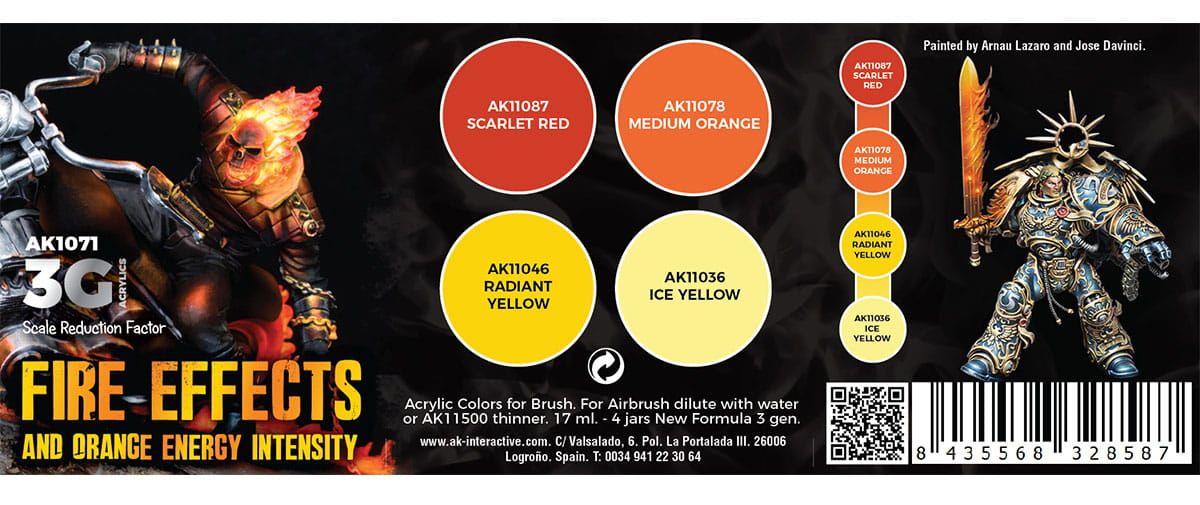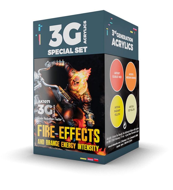 Ten zestaw trzeciej generacji zawiera wybór kolorów do malowania efektów ognia na postaciach i scenach. Zawiera 4 tony, które można łatwo łączyć, aby uzyskać realistyczne efekty ognia.