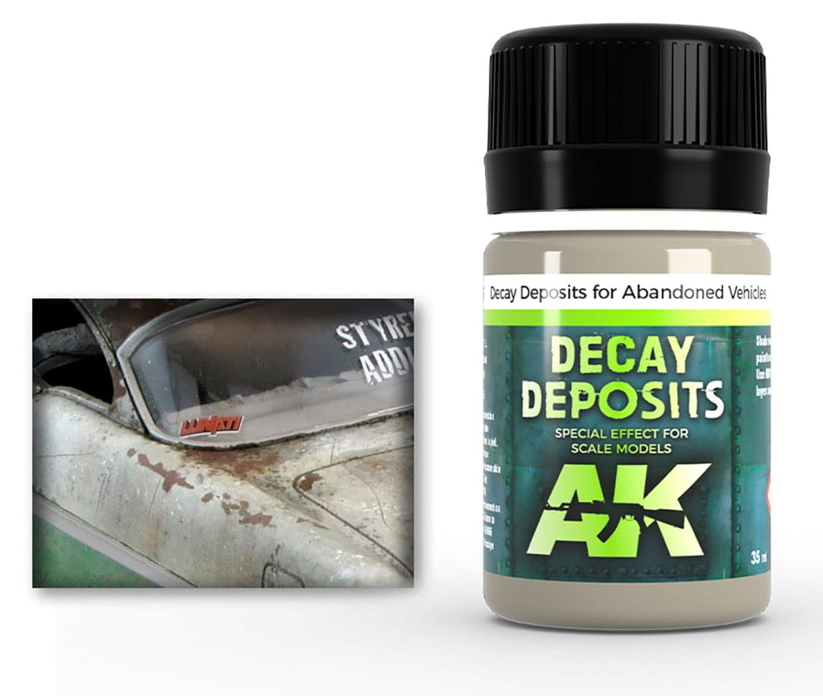 This deposit formula has been developed to give our models an appearance of decay over the surface of abandoned elements, vehicles or buildings. The finish is extremely authentic.