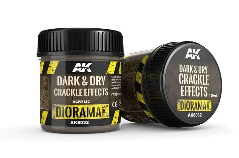 Dark and Dry Crackle Effects został opracowany do tworzenia ciemnej i popękanej gleby na dolnych powierzchniach pojazdów, dioram i winiet.