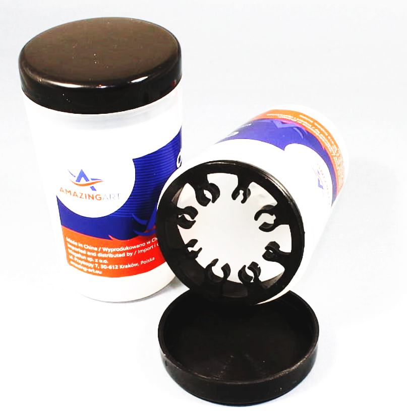 Kubek do czyszczenia pędzli AMAZING ART to doskonałe rozwiązanie dla każdego artysty, modelarza czy rzemieślnika, który potrzebuje efektywnego narzędzia do utrzymania pędzli w czystości oraz organizacji miejsca pracy. Dzięki swojej funkcjonalności i wysokiej jakości wykonania, kubek ten zapewnia wygodę i efektywność w codziennym użytkowaniu.