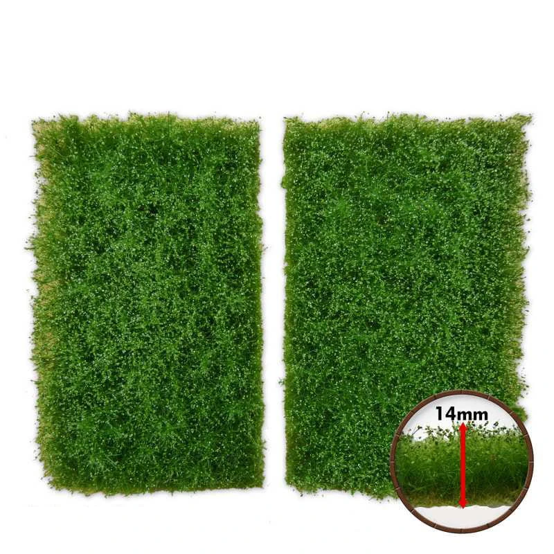Wycięcia na maty z trawy umożliwiają natychmiastowe ustawienie dużej powierzchni do kształtowania krajobrazu i tworzenia scenerii, zwłaszcza do gier wojennych. Wycinanki z mat trawiastych są dostępne w różnych stylach i można je uzupełnić dodając różne warstwy liści, kopce darni, kępy i krzewy, aby uzyskać bardzo realistyczne otoczenie.