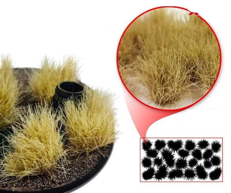 Innowacyjne samoprzylepne kępki podkładów scenicznych doskonale nadają się do ozdabiania miniaturowych podbudów, scenerii, ścieżek polnych, jezior, brzegów rzek, nasypów i skarp, a także obrzeży lasów i dróg, tworząc rabaty kwiatowe lub rozjaśniając łąki. Wystarczy wyjąć kępki trawy z opakowania za pomocą pęsety i przymocować je samoprzylepną lepką podstawą. Chociaż jest samoprzylepny, może być konieczne nałożenie odrobiny kleju na niektóre powierzchnie w celu trwałego zamocowania.