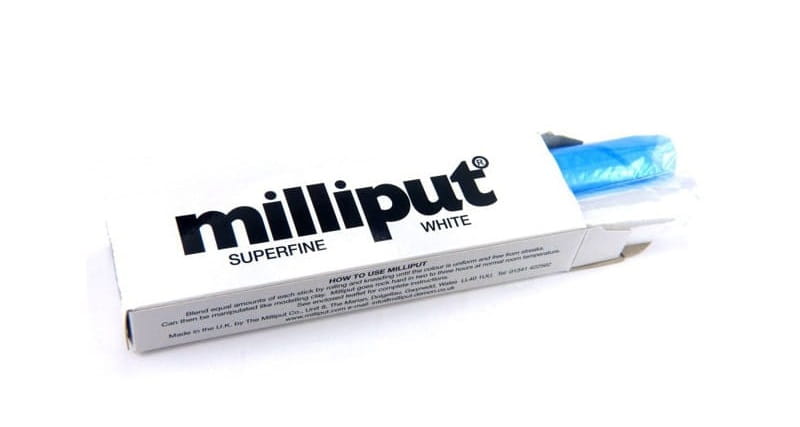 Milliput White jest podobny do Milliput Standard, ale o wiele bardziej odpowiedni do uzyskania drobniejszych i mniejszych detali we wszelkiego rodzaju zastosowaniach. Każde opakowanie zawiera dwie oddzielne kostki, z których jedna jest utwardzaczem. Po zmieszaniu równej ilości każdego innego pręta materiał zaczyna twardnieć i twardnieje całkowicie po 90 minutach, po czym można go rzeźbić, szlifować, wiercić i rzeźbić.
