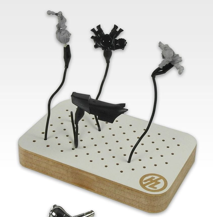 Statyw do Malowania z Zaciskami umożliwia bezdotykową prace podczas malowania aerografem. Doskonale nadaje się do pokrycia farbą mniejszych elementów.