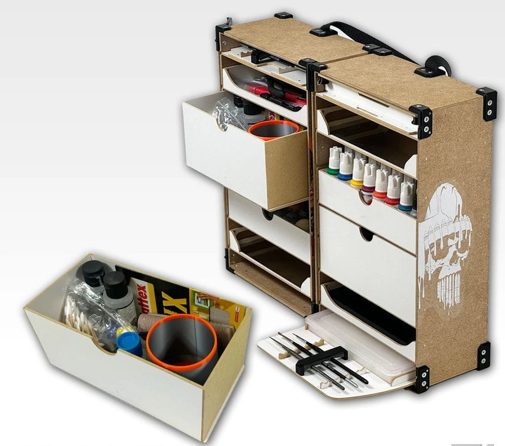 Wkład o dużej pojemności służy do przechowywania większych przedmiotów, które nie mieszczą sie do pozostałych wkładów. Jego zwiększona pojemność sprawia, że idealnie nadaje się do przechowywania farb w sprayu, podkładów, rozcieńczalników do aerografów i innych pojemników o dużych rozmiarach.