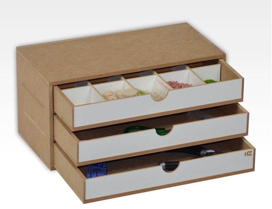 Moduł posiada trzy szuflady z separatorami do ułożenia własnej konfiguracji w każdej z nich.