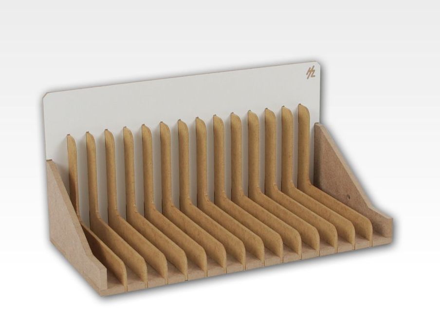 Moduł na Wypraski posiada kilkanaście slotów do przechowywania wyprasek, kalkomanii, szablonów, papierów ściernych itp. Dzięki temu modułowi zaoszczędzisz miejsce na swoim blacie podczas pracy nad modelami.