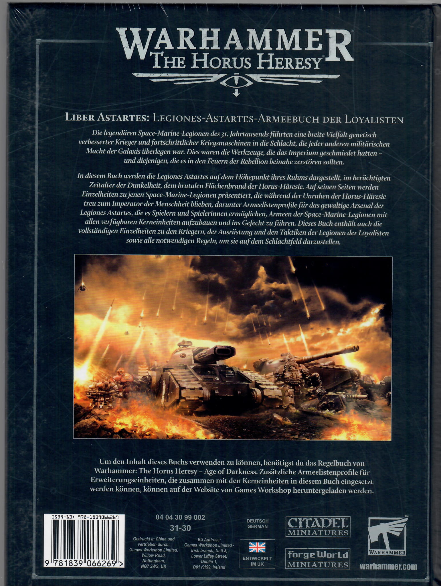 Ta obszerna, 344-stronicowa książka w twardej oprawie jest niezwykle wyczerpująca i zawiera wszystko, czego potrzebuje lojalistyczny generał, aby wystawić armię Lojalistów Legiones Astartes w grach Warhammer: The Horus Heresy. Istnieją wspólne profile dla wielu jednostek wspólnych dla każdego legionu, a także unikalne zasady dla dziewięciu, w tym profile jednostek, cechy przywódcy, rytuały wojenne, wyposażenie bojowe, zdolności frakcji i unikalne reakcje